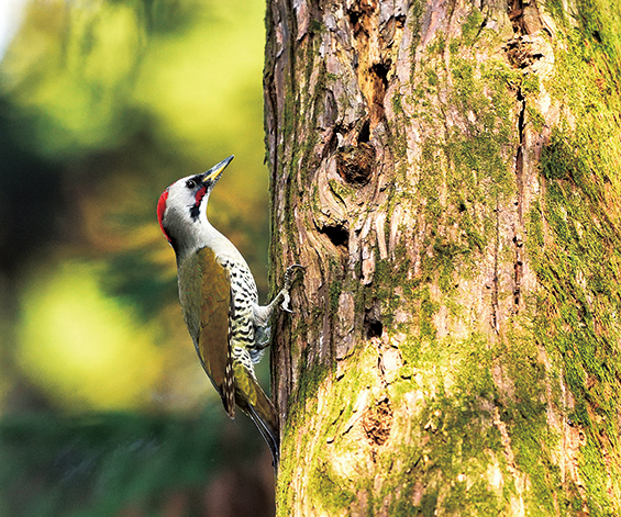アオゲラは都市部の公園でも見かけることがある、身近な野鳥です。私の自宅のそばにはアオゲラが棲む雑木林があり、「ケケケケケ・・・」と響き渡るけたたましい囀り(さえずり)で朝目覚めることもあります。この写真も自宅近くで撮影したものです。そんな身近な鳥ですが、実は日本固有の種であり、海外のバードウォッチャーにとっては憧れの存在でもあるようです。