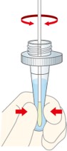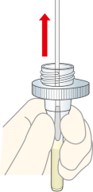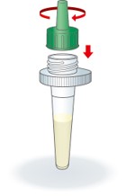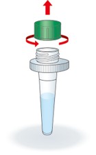① 検体抽出液のキャップを外します。