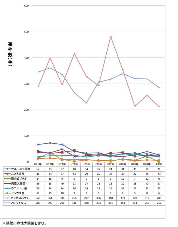 | (表2)主な病因物質別にみた事件数の年次推移 | |
